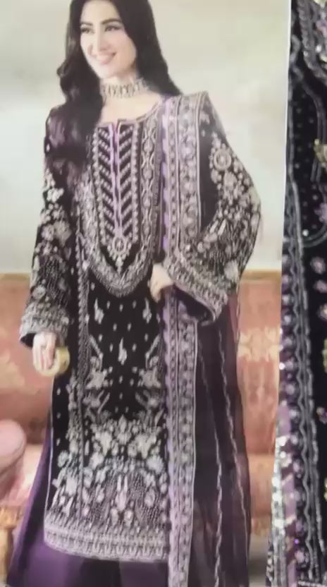▪Heavy Embroidered Velvet Front with Heavy Adda Work