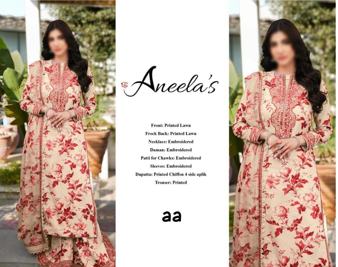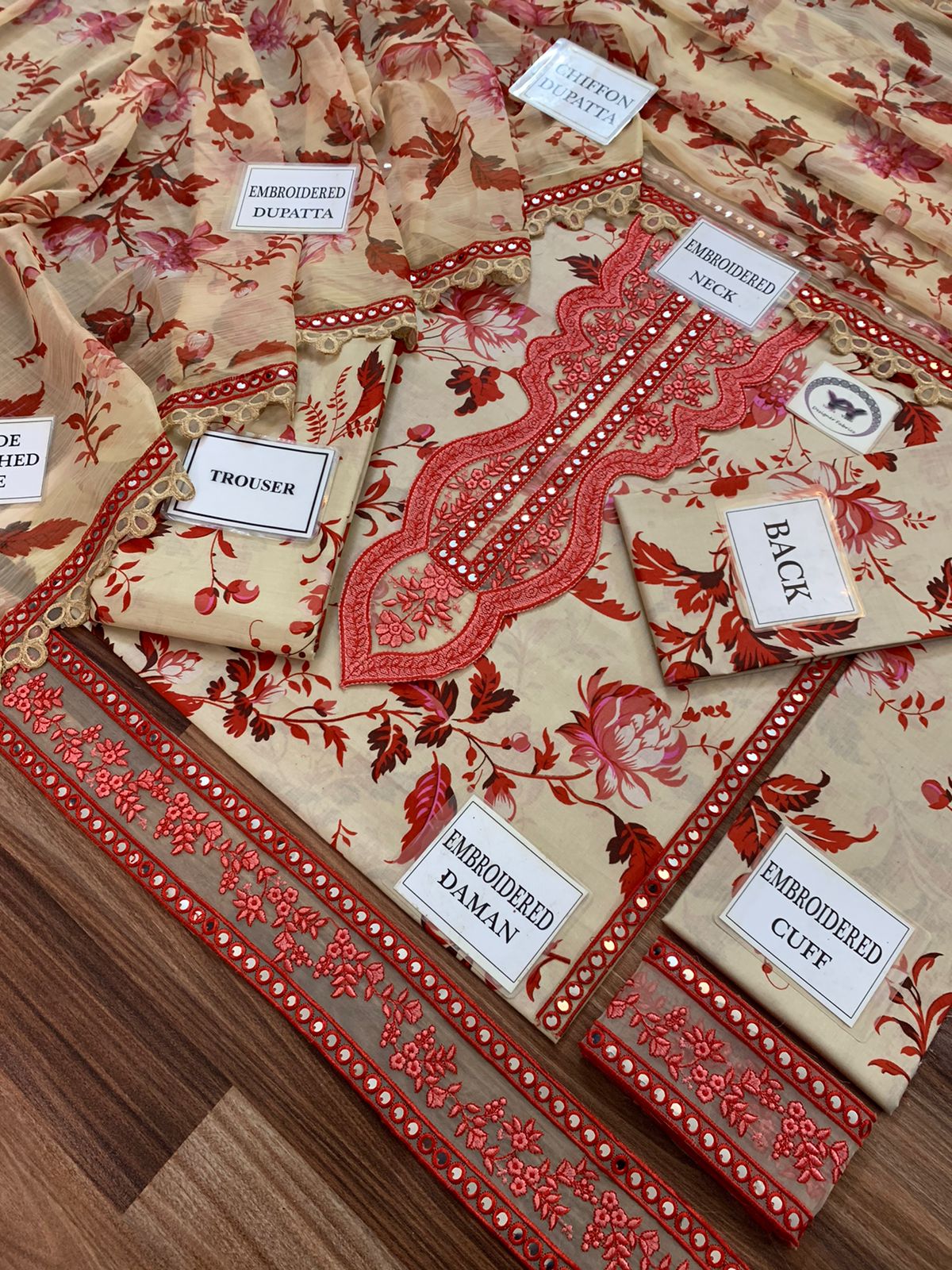 PRINTED LAWN FRONT WITH HEAVY EMBROIDERED 9.MM NECK PATCH/DAMAN/CHOWKS