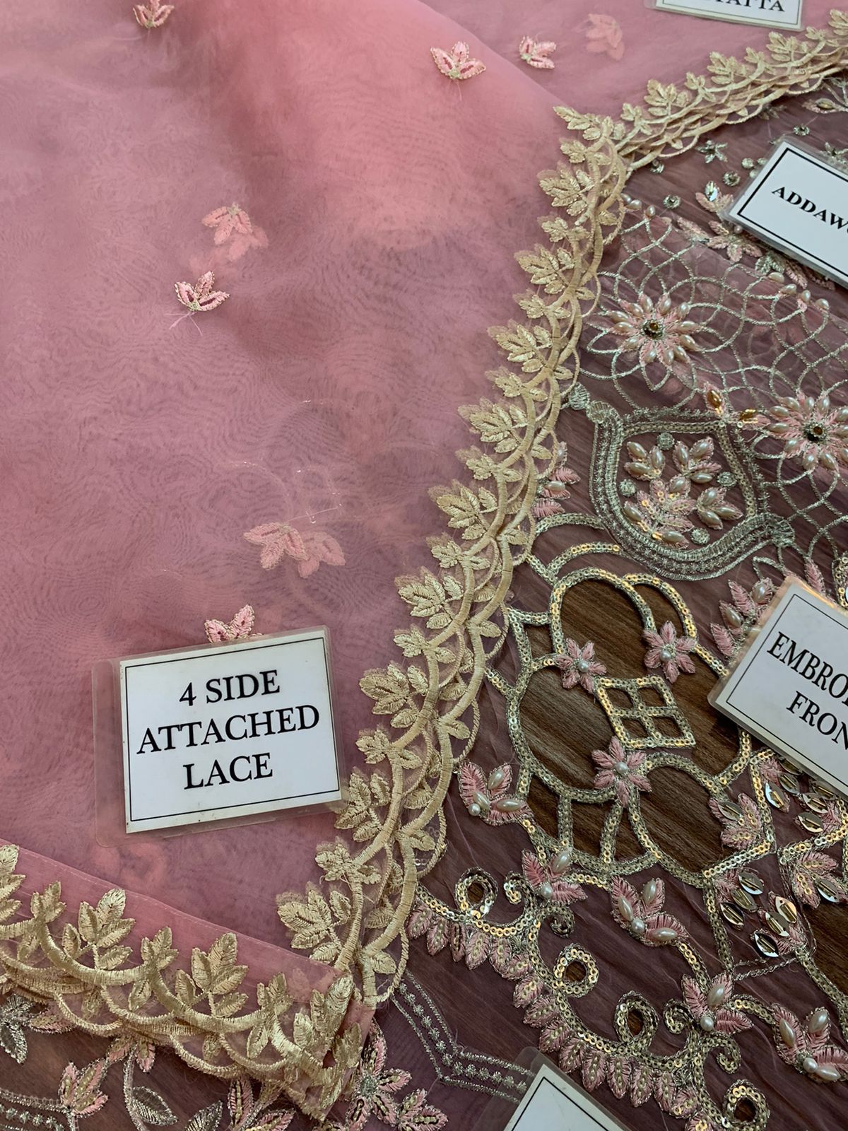 HEAVY EMBROIDERED ORGANZA DUPATTA ALONG WITH EMBROIDERED 4SIDE ATTACHED LACE