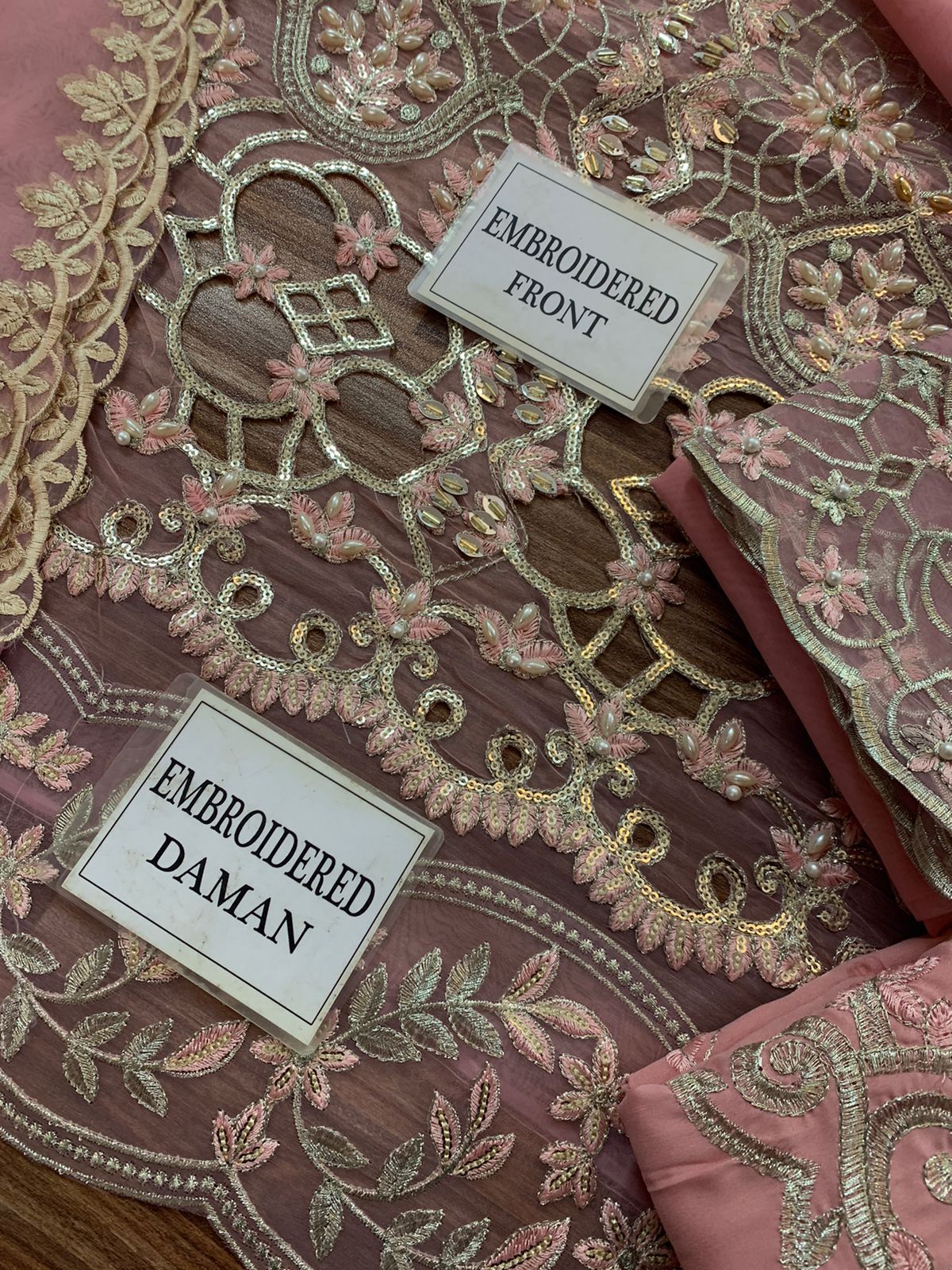 DYED PLAIN ORGANZA BACK WITH HEAVY EMBROIDERED CUTWORK DAMAN PATCH