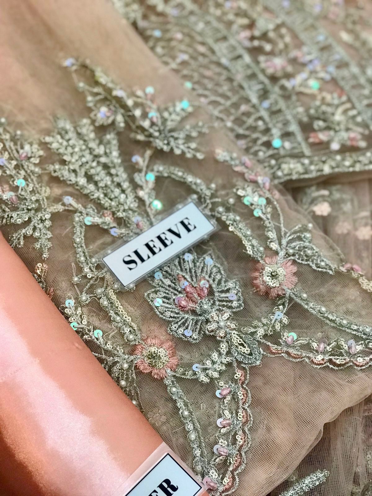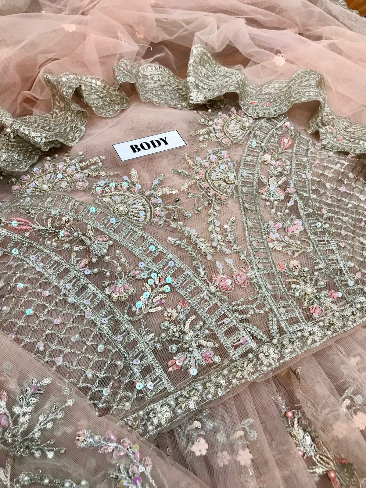 Front fully Heavy embroidery having Sequence work on it with stich Pearls attach {as original pattern}
