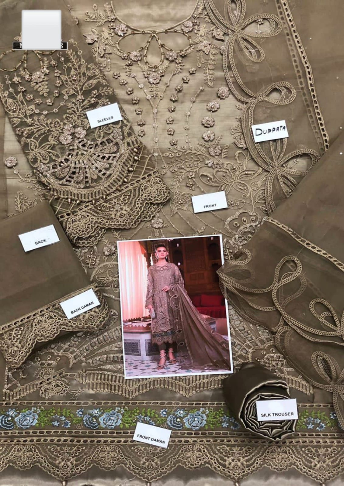 ✔ Plain Dyed Organza Back With Embroidered Patch