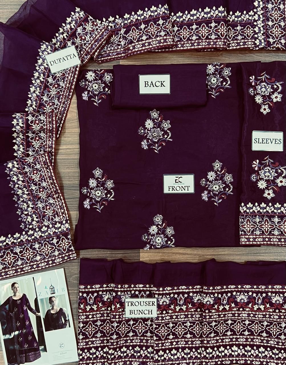 pure organza heavy embroidery with 4 side border