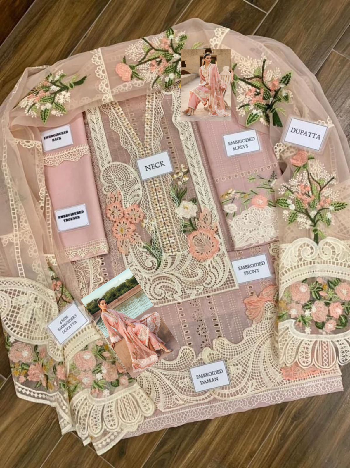 organze fully heavy embroidered dupta with 4 side embroidered lace attachment with 2 side fully heavy embroidered pallou &attachment